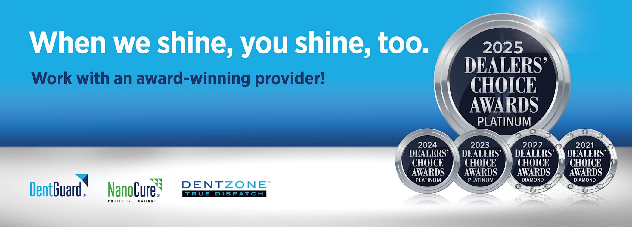 We create F&I solutions dealers believe in. From building the first-ever PDR service contract backed by Dent Zone True Dispatch™, the only national mobile repair network, to our market-leading NanoCure® chemical appearance protection programs powered by Nanoxide™, Nobilis has been at the tip of the arrow when it comes to innovation. But we couldn’t have been 4-time winners of the Dealers’ Choice Award for Appearance Protection without the support of our dealers, agents and product partners. If you’re looking for a provider who’s trusted by the biggest names in the industry to grow your F&I portfolio, look no further. We offer: